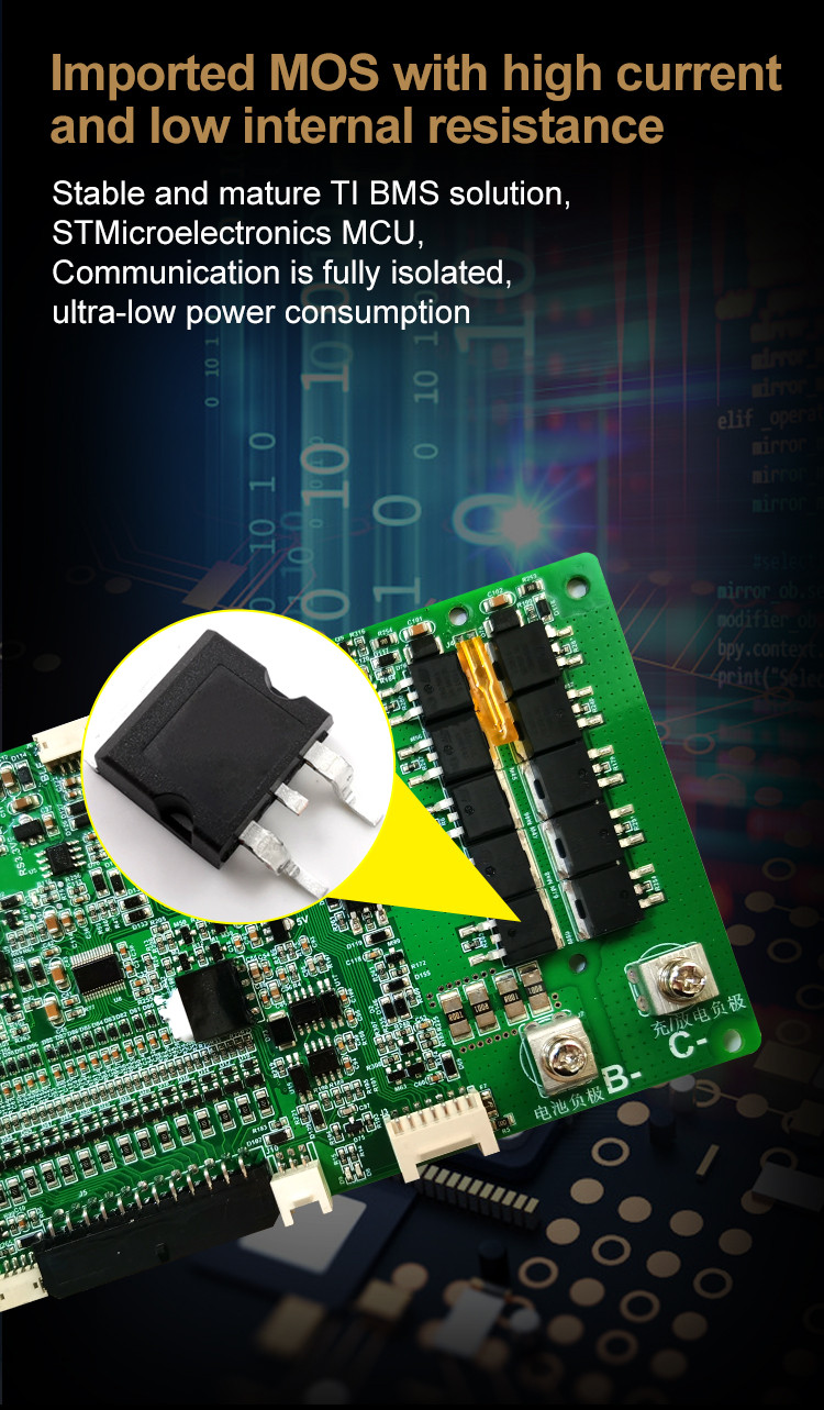 In addition to this, what distinguishes us from the original BMS is that we additionally provide a Bluetooth expansion module, which can monitor the detailed information of the battery through the Bluetooth APP, including temperature, voltage, current, power, charge and discharge curves, etc., which is particularly convenient for battery maintenance.